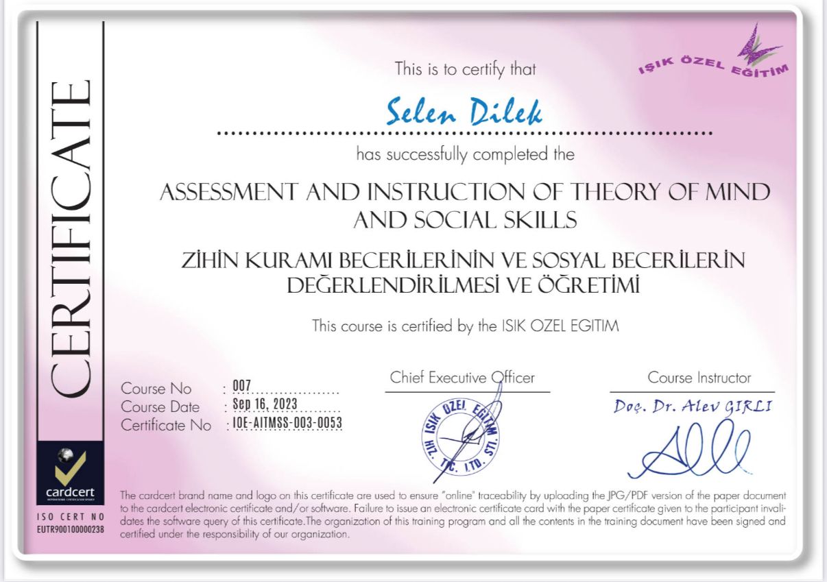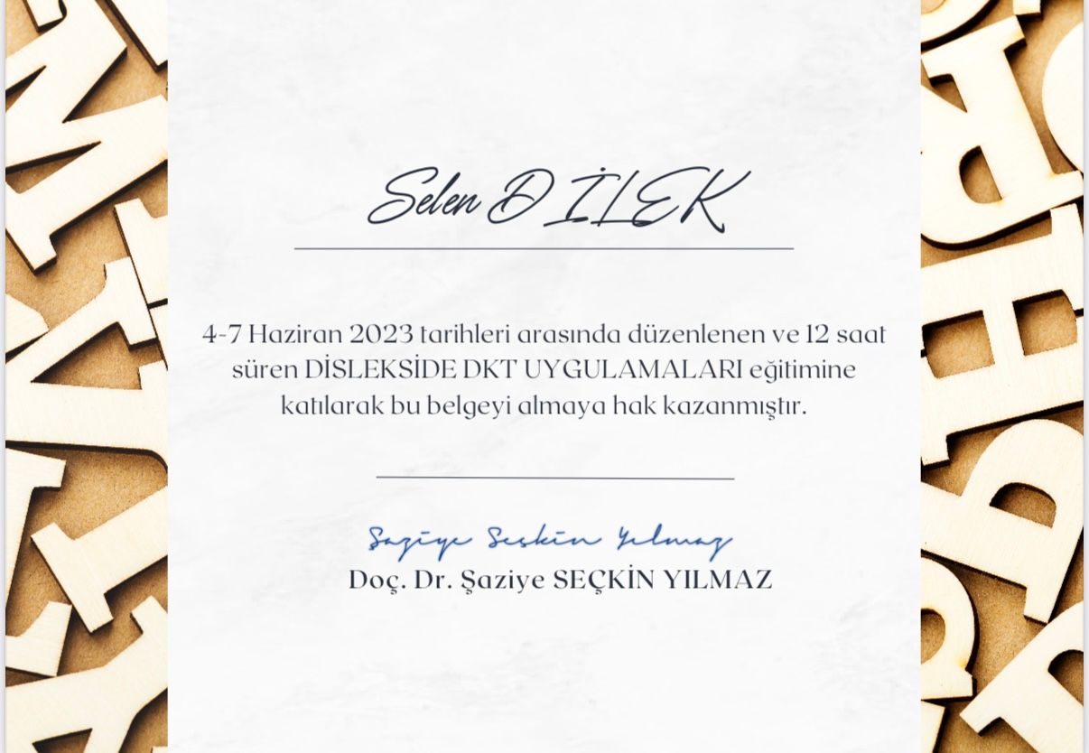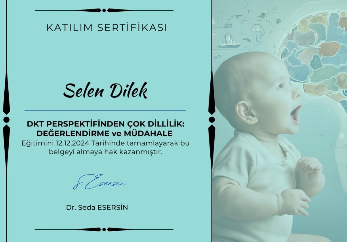 İstanbul Medipol Üniversitesi (İngilizce) Dil ve Konuşma Terapisi bölümünden yüksek onur öğrencisi olarak mezun oldum. Öğrencilik hayatım boyunca gönüllü olarak çalıştığım derneklerde çok sayıda deneyim edindim. Çeşitli kurumlarda yaptığım stajlar ile mesleki yeterliliğime katkı sağlayarak kendimi akademik anlamda geliştirdim. Aldığım eğitimler ve katıldığım kongreler ile kendimi geliştirmeye devam ediyorum. İstinye Üniversitesi (Tezli) yüksek lisans programını bitirerek uzman ünvanını almaya hak kazandım. Uzman dil ve konuşma terapisti olarak danışanlarıma hizmet vermeye devam etmekteyim.